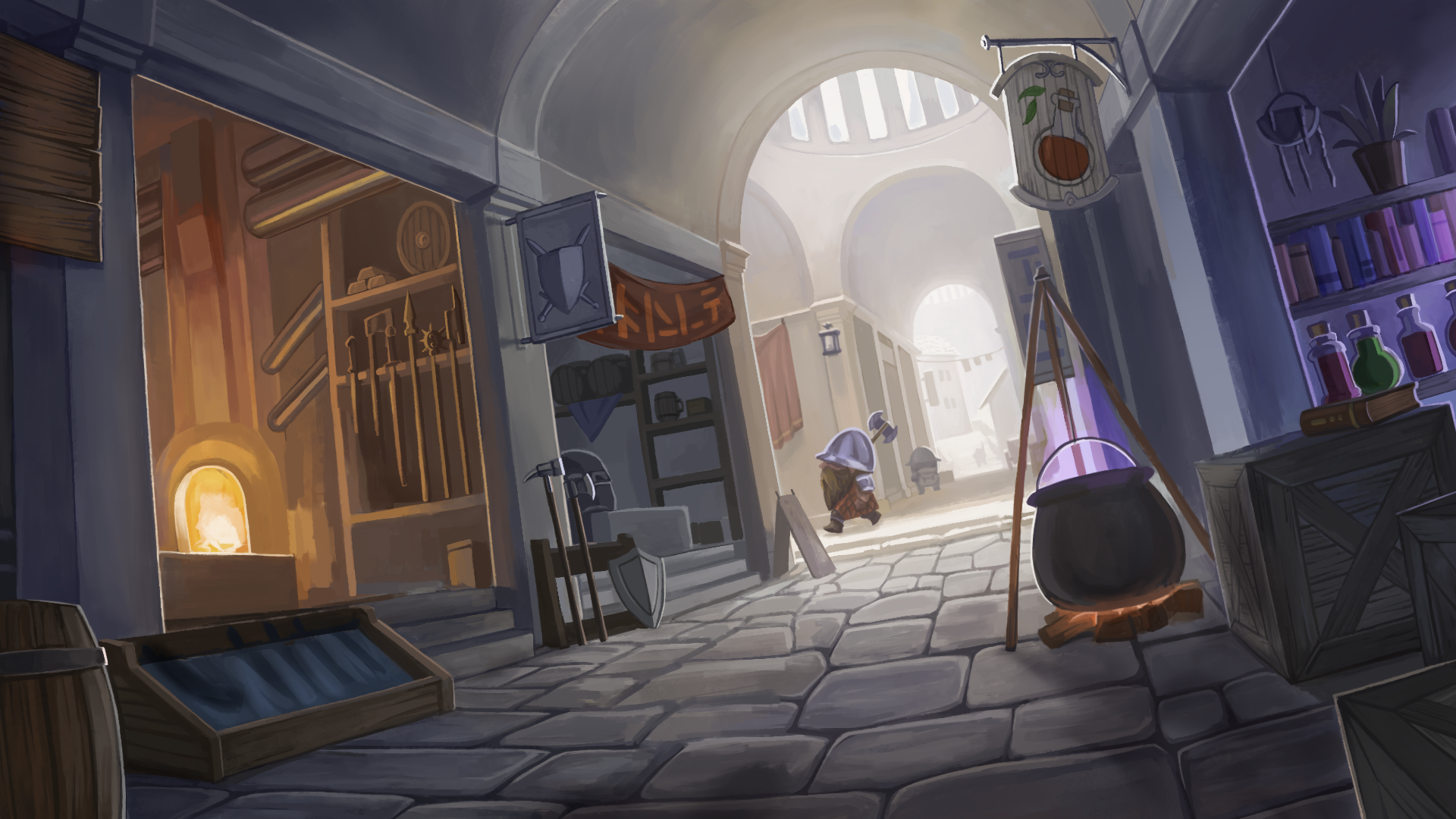 You play as an apprentice dwarf yearning to make your mark in the dwarven empire through the time-honored labor of mining and exploration. On your adventure, you can complete jobs for your guild masters for a choice of rewards, and have the opportunity to collect precious metals for yourself to upgrade your armor, tools, and weapons. As you dig deeper, you encounter motherloads of riches and surpass all of your peer's expectations. But be careful, there are many monsters and hazards that await around every corner, looking to monch your beard off. And if you die, there is no running back for your items.